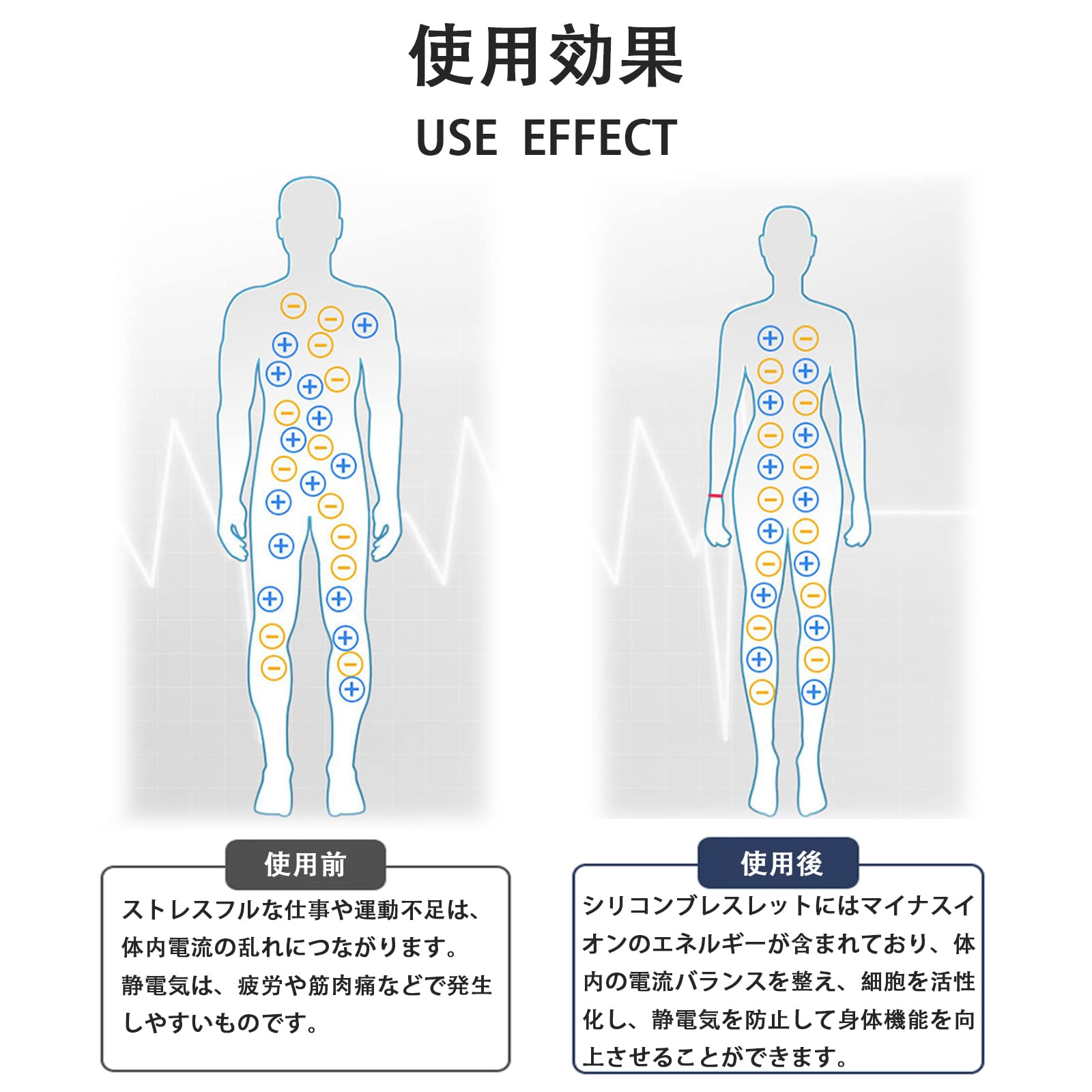 • 2.快適な素材: ブレスレットは高品質のシリコンで作られており、肌に優しく、長時間の使用でも負担になりません。